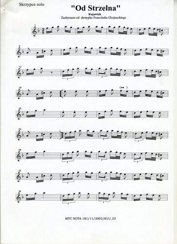 Kujawiak "Od Strzelna" zasłyszany od Franciszka Chojnackiego, zapisany w 2002 roku przez Wandę Szkulmowska i Mariana Wiśniewskiego. | |