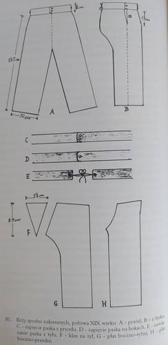 Krój spodni sukiennych, połowa XIX wieku