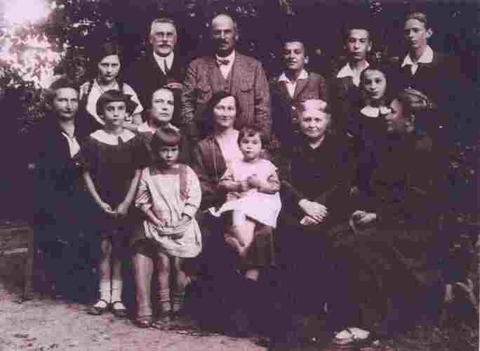 Maria z Grabskich Piątkowska z rodziną w jej majątku Dębsko latem ok. 1928 r. Maria Piątkowska siedzi z najmłodszą wtedy córką Teresą Piątkowską na kolanach, nad nią stoi jej mąż Antoni Piątkowski, od lewej (siedzi) Kazimiera z Szafarkiewiczów Bełżyńska, stoi córka Krystyna później Plewakowa, siedzi Leontyna Piątkowska, siostra Antoniego, stoi córka Natalia, później Sentkowska. Po drugiej stronie siedzi ciocia Zenobia ze Śniechowskich Czerwińska, stoi córka Bronisława później Kinastowska, oraz siedzi bokiem Maria z Lemańskich Śniechowska, żona Edmunda Śniechowskiego stojącego obok Antoniego Piątkowskiego. W lewo od Edmunda Śniechowskiego stoi Bogna ze Śniechowskich później Kurnatowska, zaś po drugiej stronie od ojca Antoniego i Marii Piątkowskich Stanisław i Jan Piątkowscy oraz Stach Bełżyński.