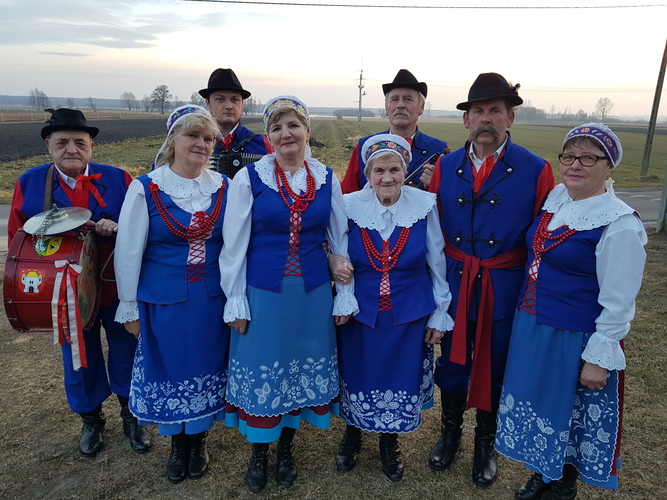 Muzycy z "Kapeli Spod Kowala" na fotografii z 2018 roku. Od lewej: Józef Ogłodziński (bęben), Irena Ostrowska (śpiew), Konrad Stawicki (akordeon), Irena Wichlińska (śpiew), Zofia Szmajda-Mierzwicka (śpiew), Aleksandra Dybowska (śpiew), Włodzimierz Tomaszewski (skrzypce), Jan Olejnik (śpiew). | |