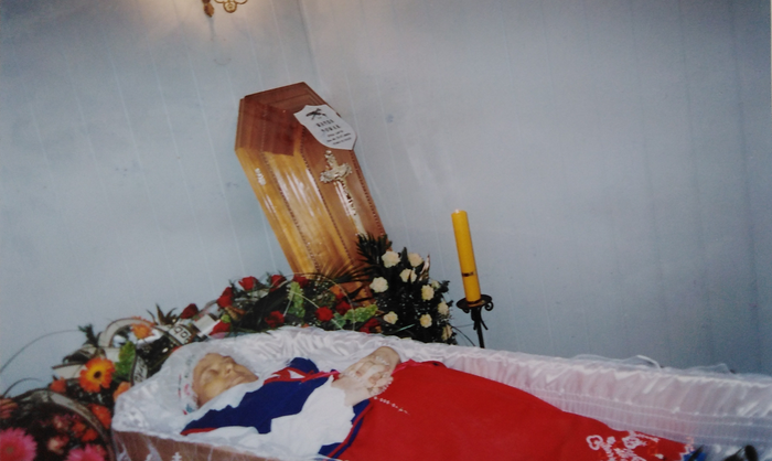 Zdjęcie przedstawia zmarłą Wandę Nowak podczas różańca. Do zdjęcia dołączony był podpis: "29 lipca 2005 odeszła od nas na zawsze aktywna, długoletnia (16 lat), kochająca folklor, koleżanka Wanda Nowak." | |