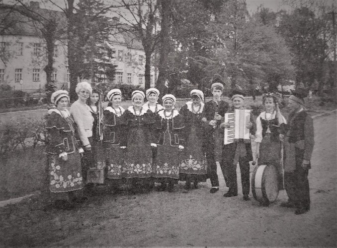 Zespół Ludowy "Babiak" - 1993 rok. Od prawej: Czesław Marciniak, Agnieszka Piasecka, Piotr Banasiak, Robert Matuszak, Sabina Rosińska, Jadwiga Andrzejewska, Krystyna Rosińska, Genowefa Gibaszek, Elżbieta Kostrzewska, Stanisława Ławniczak, Teresa Bruckler (sponsor zespołu z USA), Agnieszka Matuszczak. | |