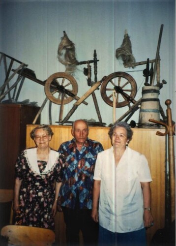 Fotografia przedstawiająca miejsce spotkań członków Teatru Obrzędowego "Borowioki". Obecni na zdjęciu: Czesław Marciniak, Zofia Matuszak i Krystyna Rosińska.