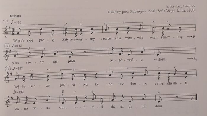 "W pańskie progi wstympujymy" (nuty) 1956 A. Pawlak, 1975: 22 Osięciny pow. Radziejów 1956, Zofia Wojnicka ur. 1886.